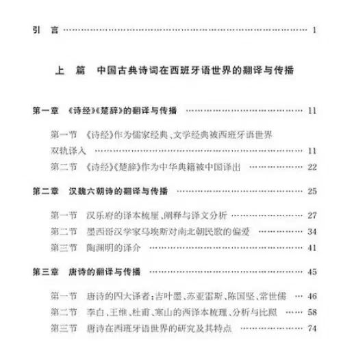 该专著属于“十四五”时期国家重点出版物出版专项规划项目“中华译学馆·中华翻译研究文库”。 该书从译文、译本、译者、出版者四个方面梳厘了“中国诗歌通选”“《诗经》《楚辞》”“汉魏六朝诗”“唐诗”“宋元明清诗词散曲”“经典故事”“古典散文”“古典戏曲”与“古典小说”在西班牙语世界的传播现状,勾勒了中国古诗、中国古文在西语国家的译介版图,剖析、比照了经典译文;挖掘了经典译本并分析译本的生成过程;描述了突出译者的成长历程、学缘结构以及译作;对比译入、译出的对象选择、译介方式与传播路径,深入分析了重要译出机构。