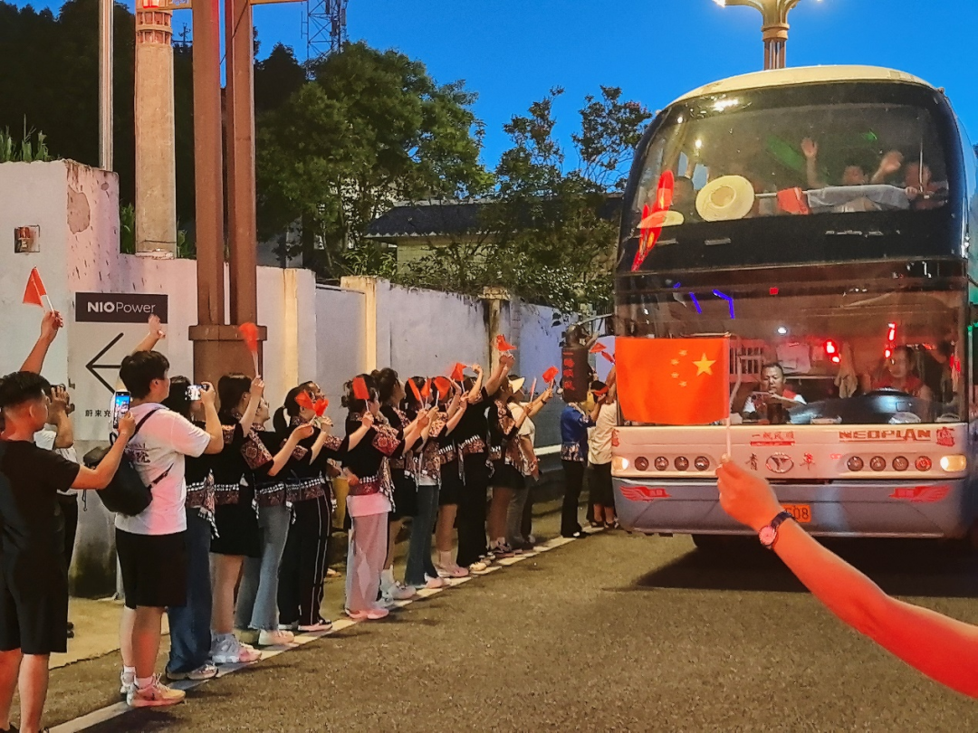 7月3日晚,实践队身着苗族服装,手举鲜艳的五星红旗,在社区工作人员的引导下整齐列队,用最质朴的方式迎接支援榕江县抗洪救灾的英雄们凯旋。同学们齐声高喊“欢迎英雄回家”,表达着对前线"战士"们的崇高敬意。这场临时策划的迎接仪式,为此次的“三下乡”社会实践增添了一份厚重的注脚,为同学们上了一堂生动的实践课:团结不是口号,是灾难来临时递出的手,是平安归来时唱起的歌。而这群青年,将带着这堂生动的实践课,把民族团结的种子播向更远的地方。