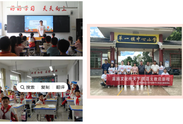 实践队走进台江革一小学与台盘小学,以当地特色节日为切入点,开启了英语教学之旅。课堂上,支教队员从吃新节餐桌上的白切肉、热闹的村BA赛事等家乡场景入手,用英语生动描绘这些充满烟火气的画面,让孩子们发现家乡的独特魅力竟能用世界语言展现。队员们还以村BA为桥梁,延伸至中国男子篮球职业联赛CBA,向孩子们展现中国体育的蓬勃力量,使孩子们在拓宽英语词汇量的同时,深刻感受中国体育文化的多元与传承,民族自豪感油然而生。