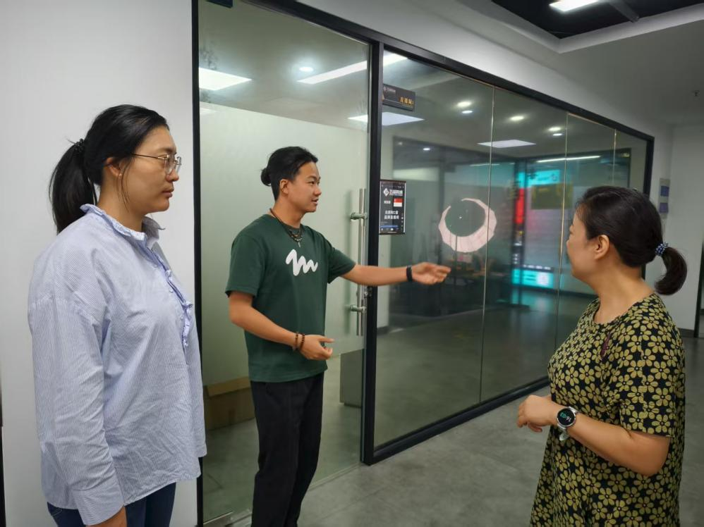在跨境电商运营中心,汪欢现场观摩实习生处理拉美市场订单的实战场景,详细询问学生在外语本地化、文化适配等专业模块的应用情况。赵智利老师结合企业实际案例,深化学生对跨境支付、文化适配等场景的理解。