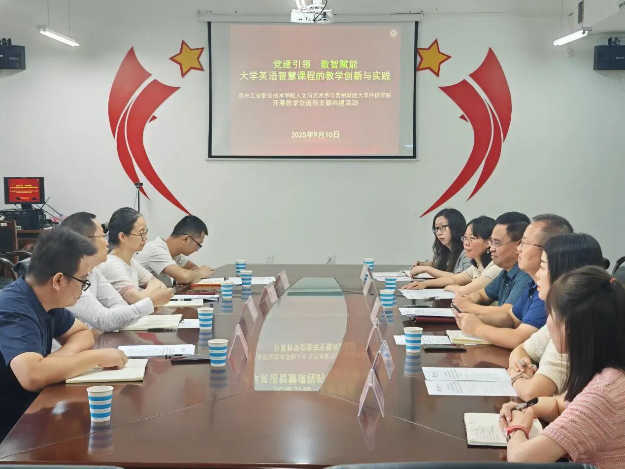与贵州工业职业技术学院人文与艺术系开展教学交流暨支部共建活动。活动以“党建引领 数字赋能——大学英语智慧课程的教学创新与实践”为主题,由色色动漫