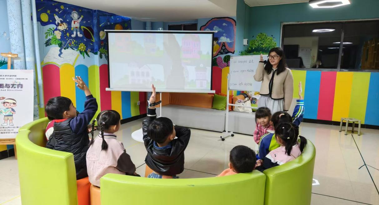 公租房A3活动室,以“Map and Directions”为主题开展英语小课堂。志愿者们通过情景模拟和互动游戏,将方向指引等实用英语融入趣味寻宝环节,让孩子们在欢乐中提升英语表达能力,感受学习乐趣。