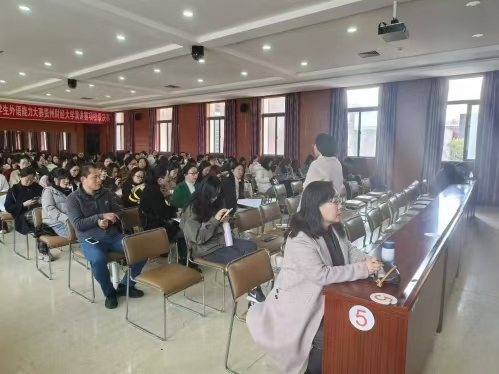 雷晴岚副院长主持,由大外二部的张筠老师、英语系的蔡婧老师以及西语系的王亚娇莎老师进行了现场说课,各系部主任及全院教师都参加了本次活动。