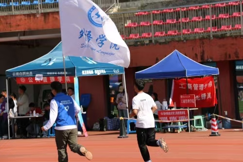 学子良好的精神风貌。场下,学院志愿者和学生会工作人员为场上运动员们摇旗呐喊,加油鼓劲。