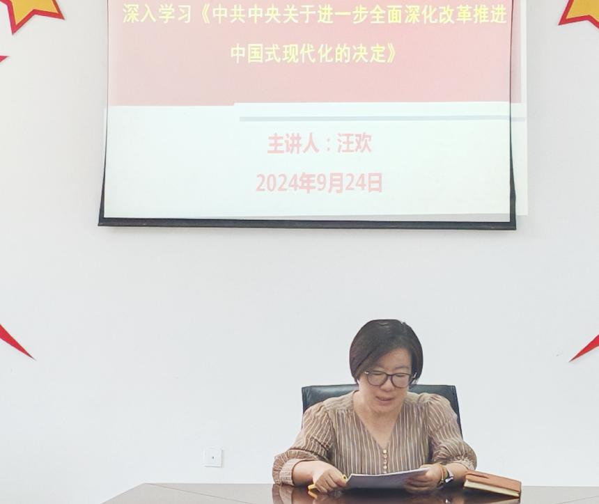 为深入学习贯彻党的二十届三中全会精神,9月24日下午,汪欢同志在西区励学楼301会议室为大学外语教学部教工第一党支部和本科生第三党支部师生党员上党课,党课题目为《深入学习<中共中央关于进一步全面深化改革、推进中国式现代化的决定>》。