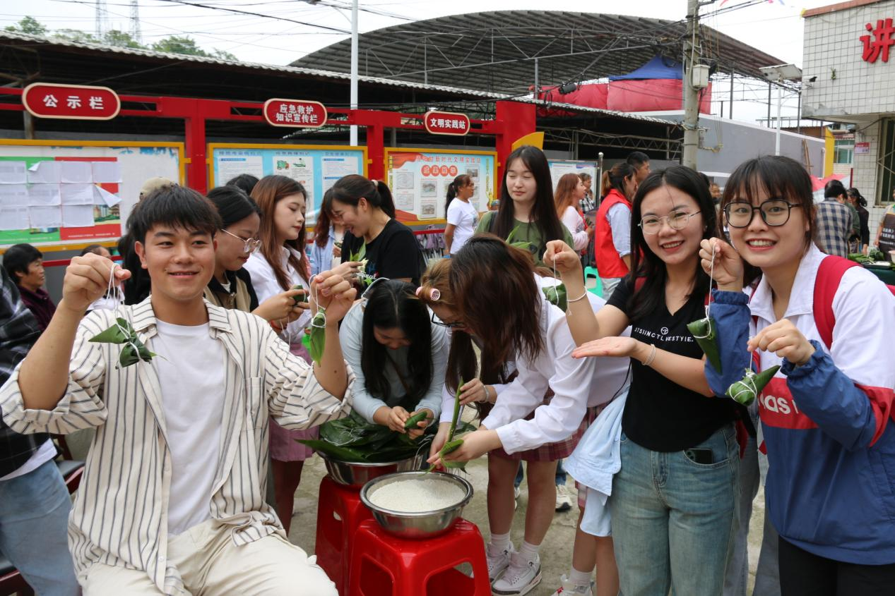 随后,团员青年们分组参与了包粽子体验活动,大家围坐在一起,在村民的带领下学习包粽子的技巧,现场欢声笑语,洋溢着浓浓的节日氛围。