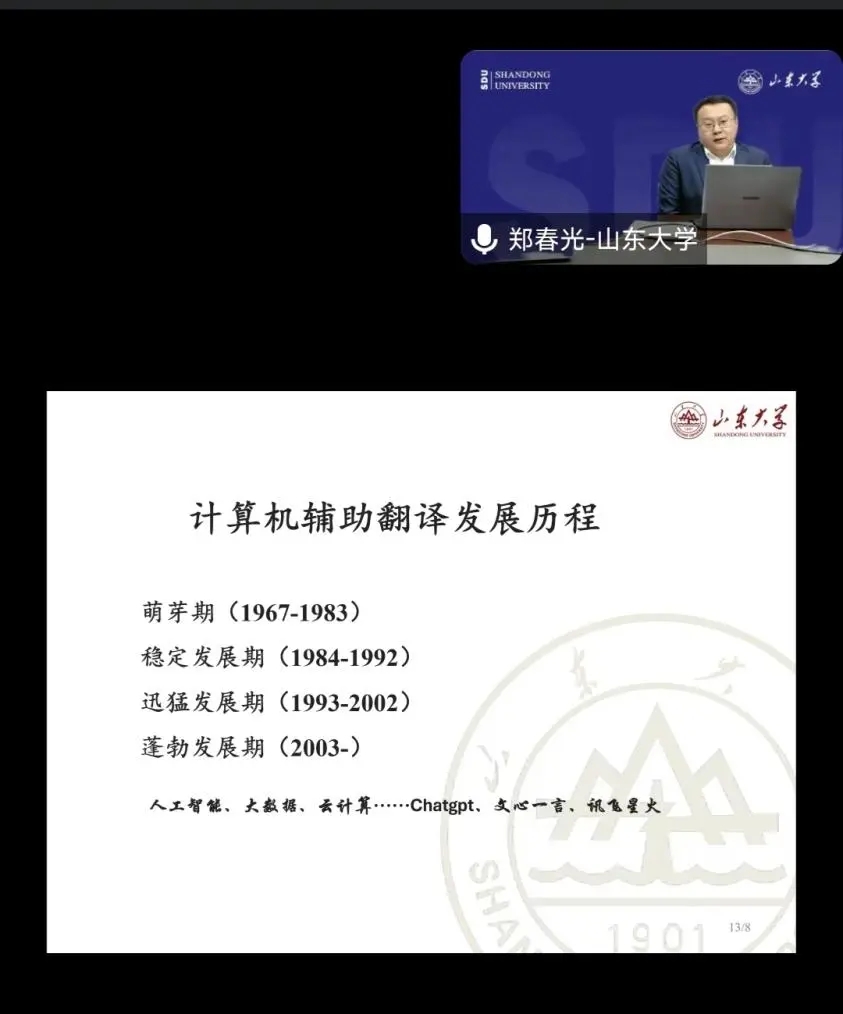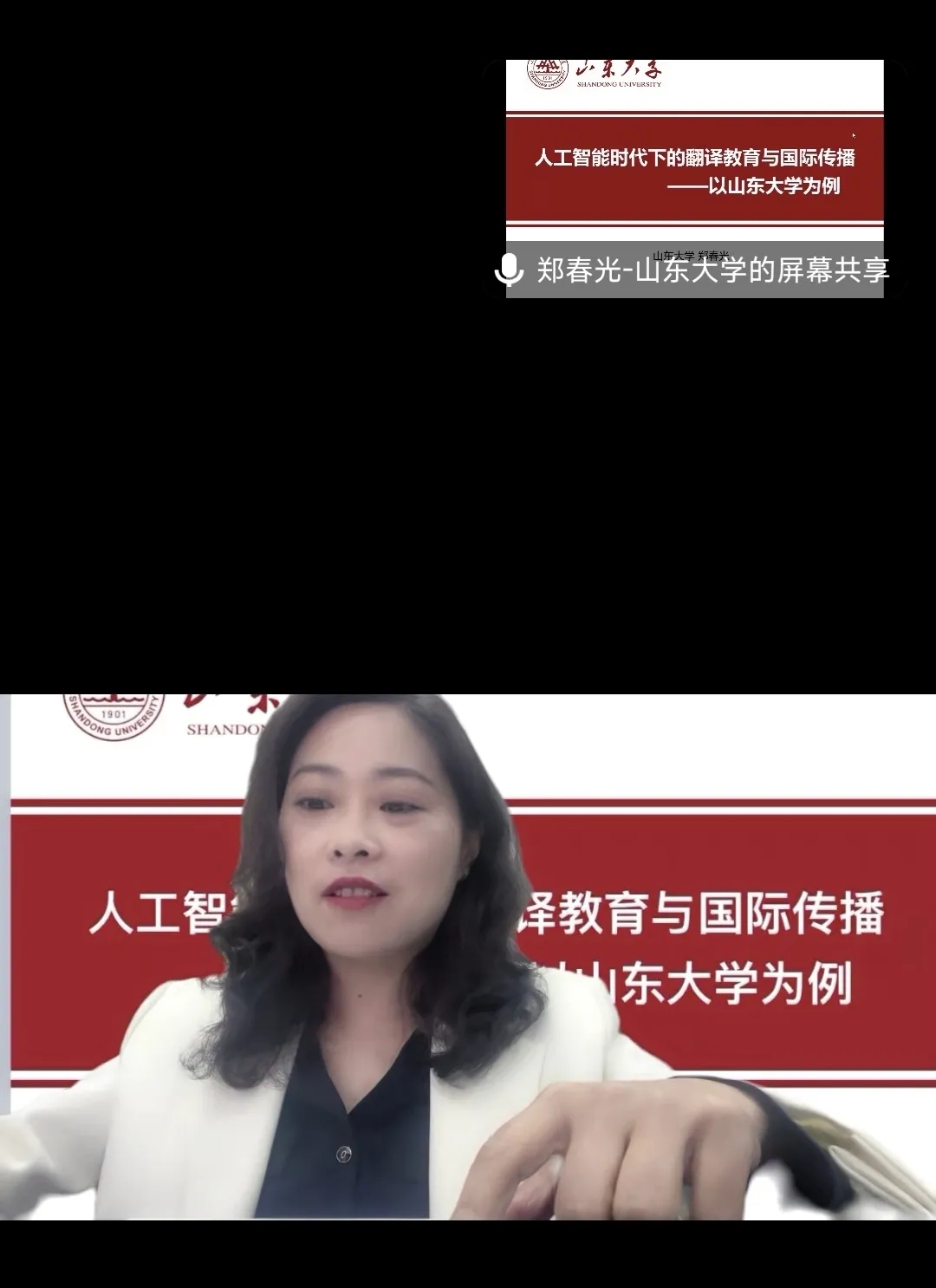 全体师生对于人工智能时代下,如何讲好中国故事,传播好中国声音,推动中国文化走出去的路径的认识和进一步思考,4月10日晚上7点,山东大学郑春光副教授就“人工智能时代下的翻译教育与国际传播”这一主题,进行了线上讲座。