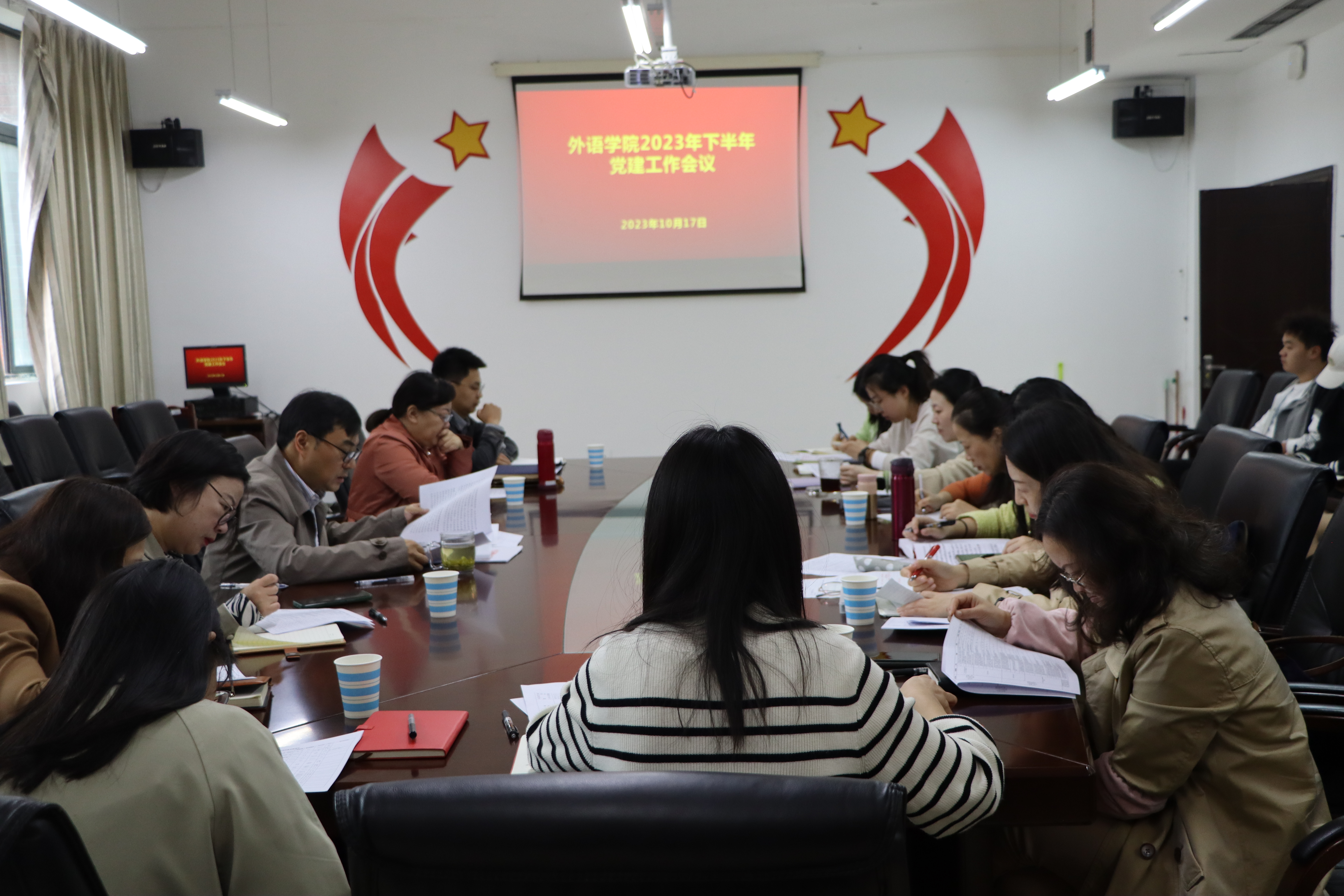强化校内政治巡察反馈问题整改责任落实推进表》抓好整改落实;三是各党支部认真贯彻落实“三会一课”制度,开展好支部活动;四是做好支部换届准备工作,确保支部换届选举工作如期顺利完成;五是扎实做好党员发展各项工作,严把发展党员“入口关、质量关、程序关”,持续提升党员发展工作质量;六是加强党员教育管理和党务工作者的培训,不断提升党员党性修养和党务工作者的业务水平;七是促进党建工作与业务工作深度融合,通过党建工作引领和推动业务工作,并用业务工作来检验党建工作成效,为外语学院高质量发展提供坚强的政治保障。