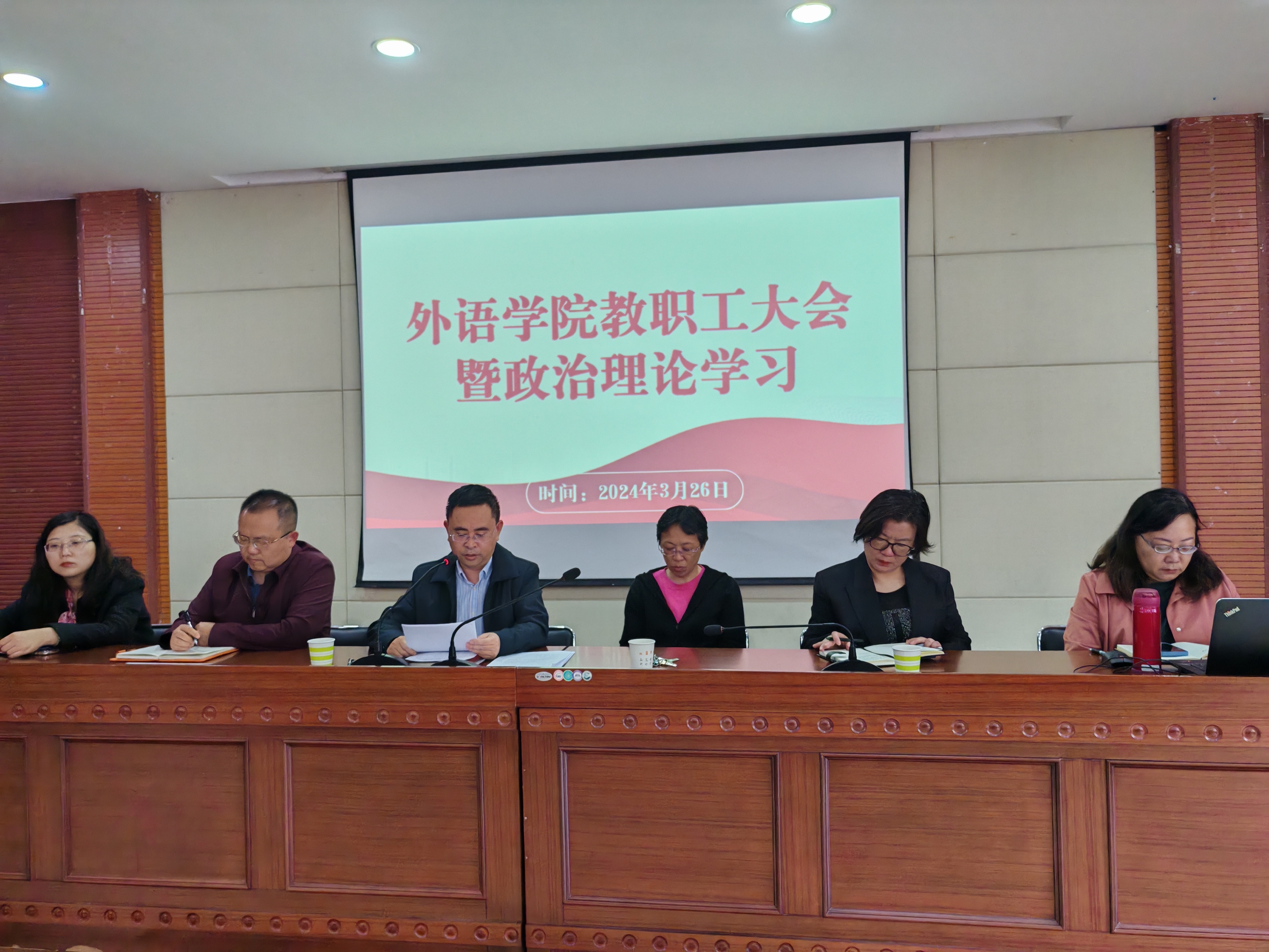 在励学楼401会议室召开政治理论学习会。院党委书记黄贵平主持会议,全体教职工参加了会议。