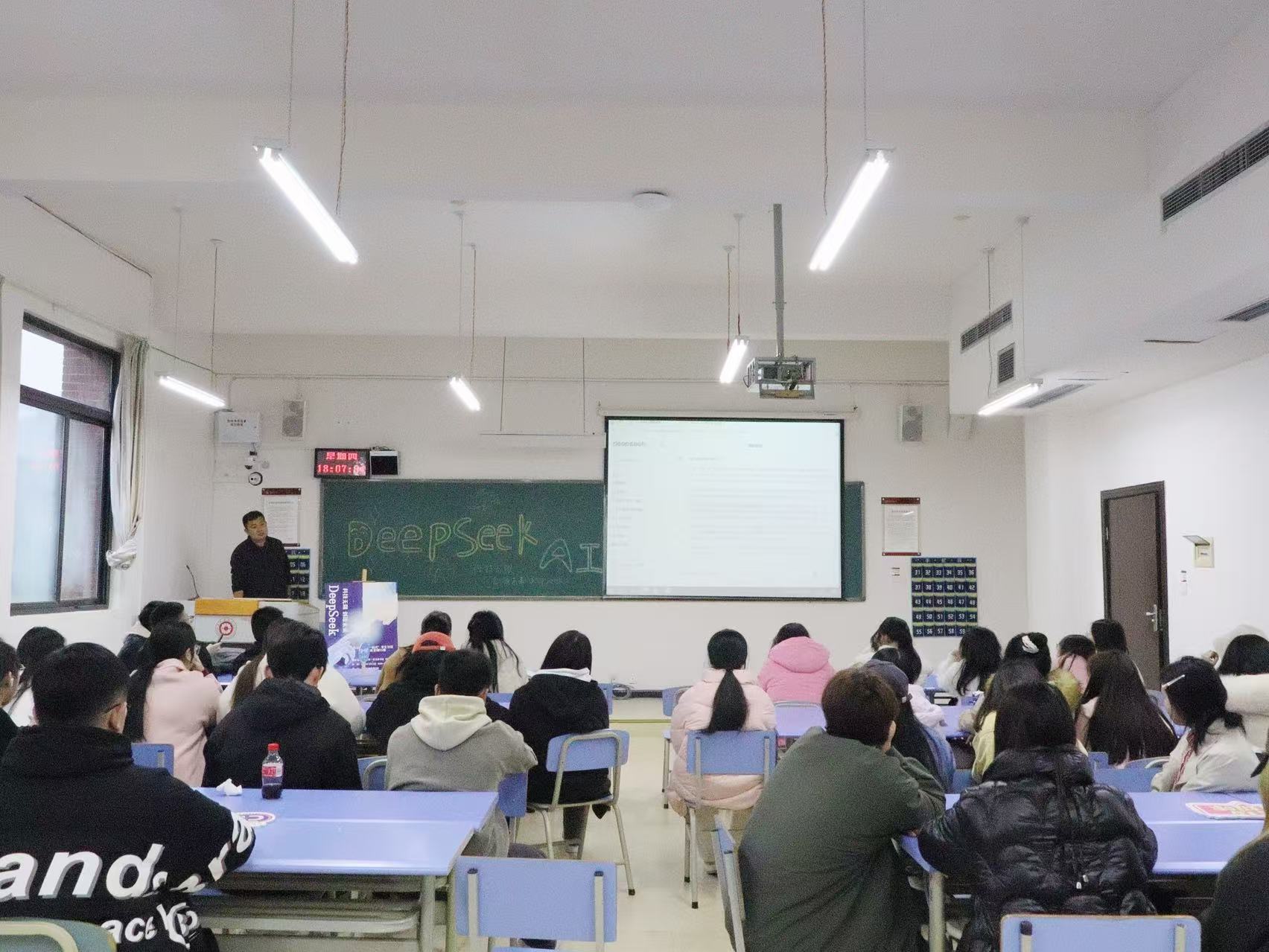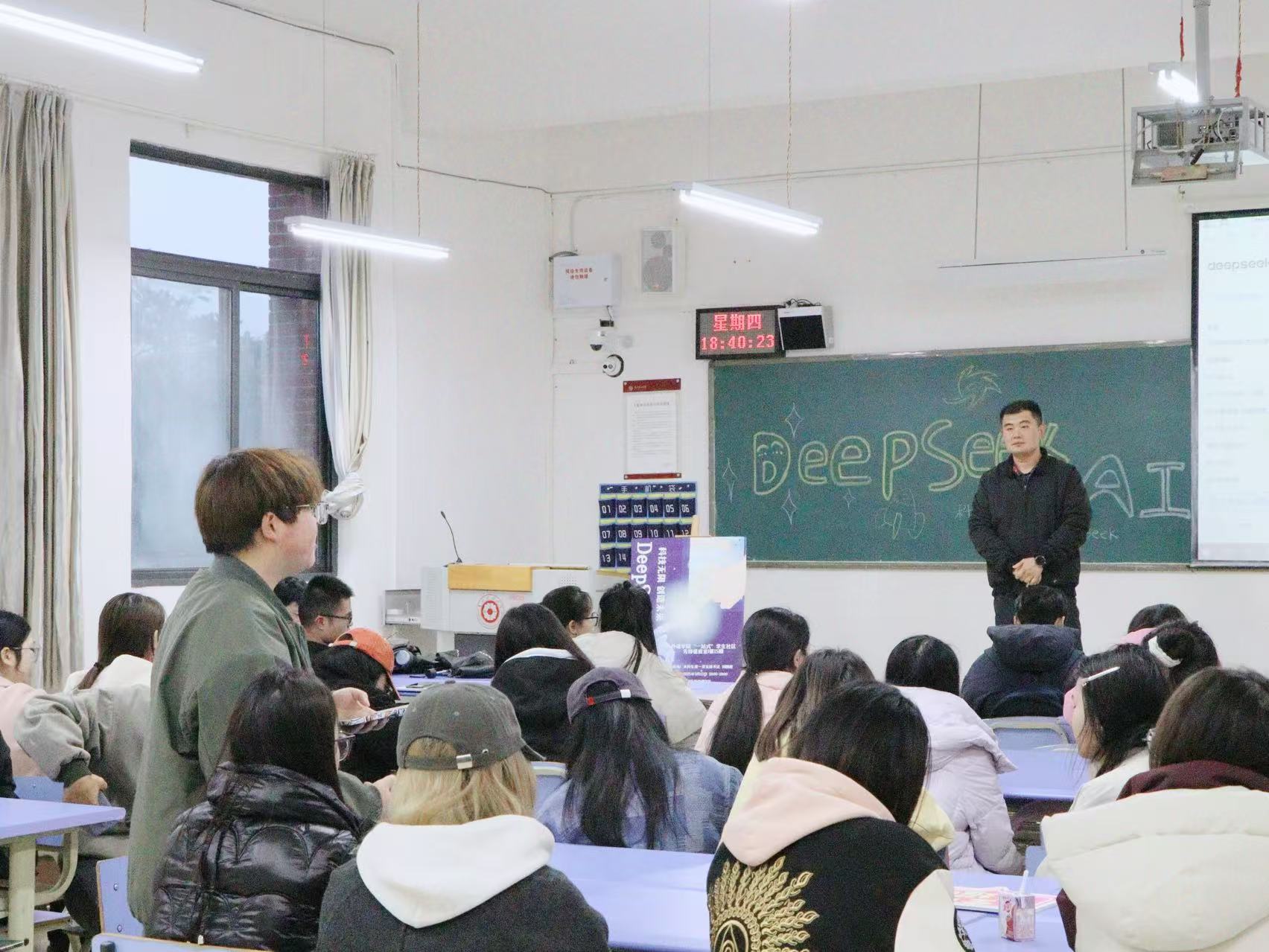 活动中刘鹏程为大家深入介绍了“DeepSeek”这一前沿AI工具,聚焦其在数据分析、文本生成、语言学习、简历修改、简报制作等方面的强大功能,通过案例演练向大家展示了如何合理高效地运用高科技工具,帮助学习,为个人成长发展注入强大动力。