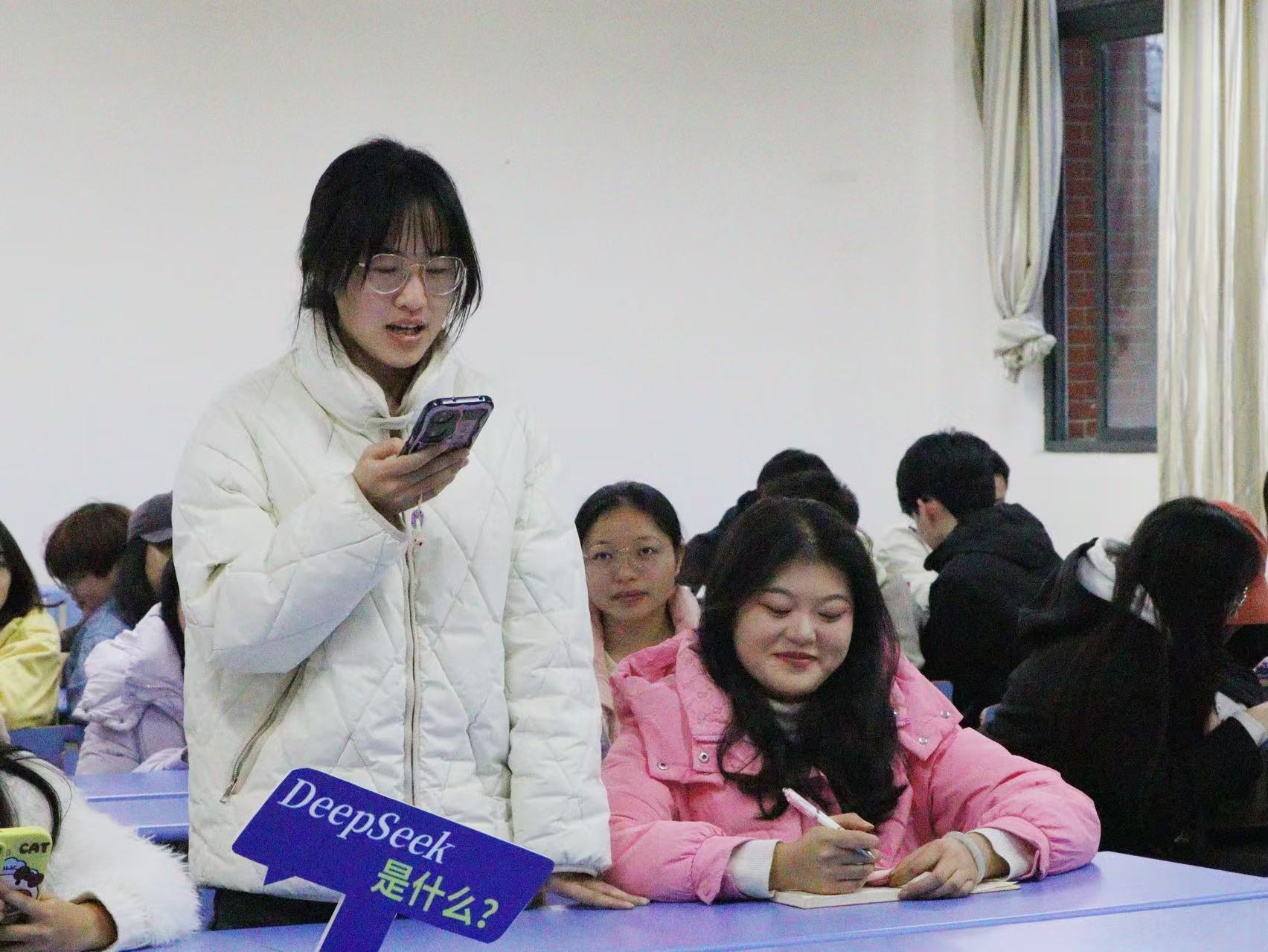 随后同学们进行分组实践演练,并围绕“DeepSeek赋能教育”主题进行了交流研讨。同学们纷纷表示,使用“DeepSeek”辅助学习与传统教育有着显著的不同,它使学习路径更具个性化,学习的内容更具深度和广度。“DeepSeek”的诞生与迅速普及让大家认识到AI时代已经到来,必须重新审视里自己的学习方式。在未来的学习中,会更加注重学习使用新科技,帮助提升学习效果和技能。