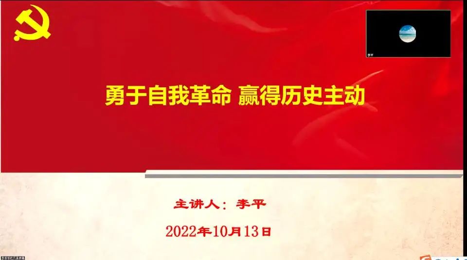 纪委书记李平为2022年秋季入党积极分子培训班作题为“勇于自我革命,赢得历史主动”的专题讲座,培训班全体成员参加。