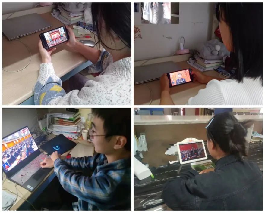 党委组织广大党员干部、教职工生通过电视、网络等收听观看。学院在励学楼设3个集中观看会场,学院党委领导班子成员、教师党员代表、学生党员代表、发展对象代表、入党积极分子代表以及群众代表等100余人现场集中观看大会直播,其他教职工在家、学生在宿舍通过电视、网络直播等方式同步观看。