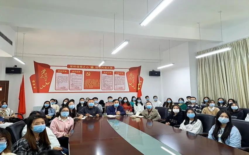 集中观看会场一:学院党委领导班子和师生党员代表、群众代表在励学楼301会议室集中观看