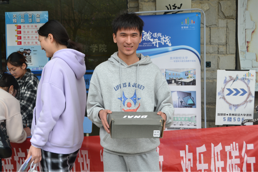 举办废品回收活动,此次活动在励学楼大门处开展。活动以提高同学们对于可回收物的再利用价值认知为目的,激发同学们创建和谐环保校园的意识。