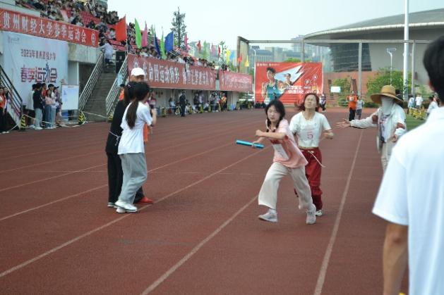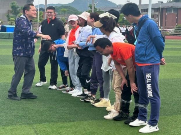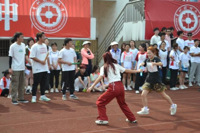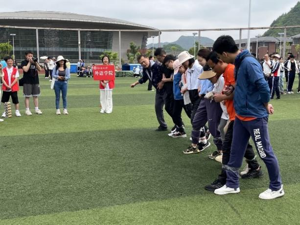在田径项目之外,外院师生同样在趣味比赛项目中一展身手。他们彼此团结协作,展现集体的力量,在欢声笑语中完成了比赛。