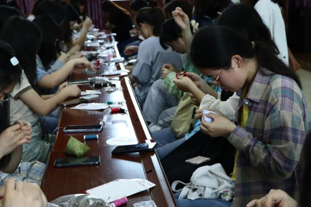 “巧糊彩画飞蹁跹,放殃祈得平安康”。端午节的室外虽然淅淅沥沥的下着雨,同学们依然能齐聚一堂给纸鸢染色,然后同学们带着绘色完毕的纸鸢纪念合影,那涂在纸鸢上的水彩、以及绽放的笑脸,何尝不是涂在外院学子青春上明亮的底色。