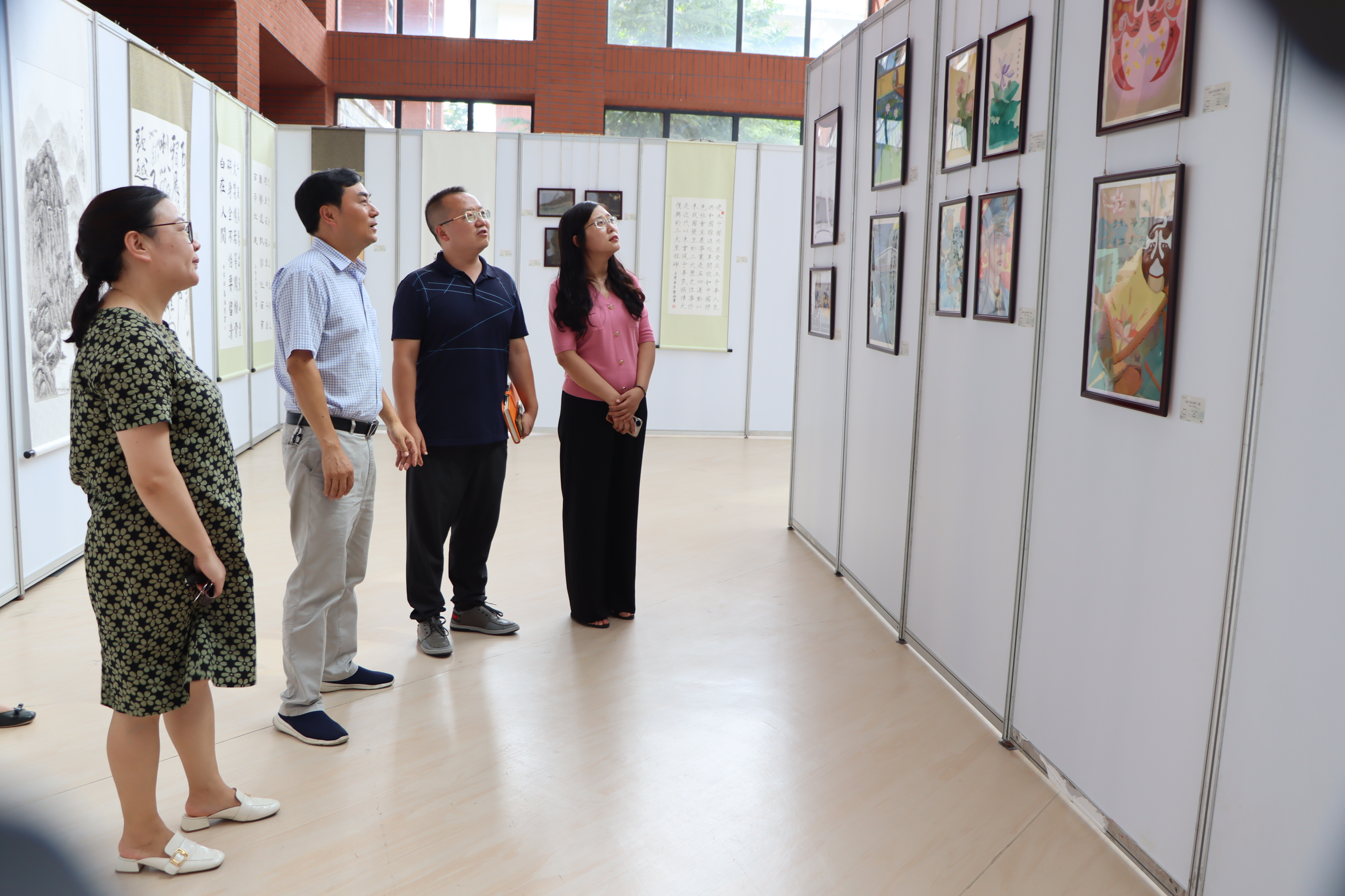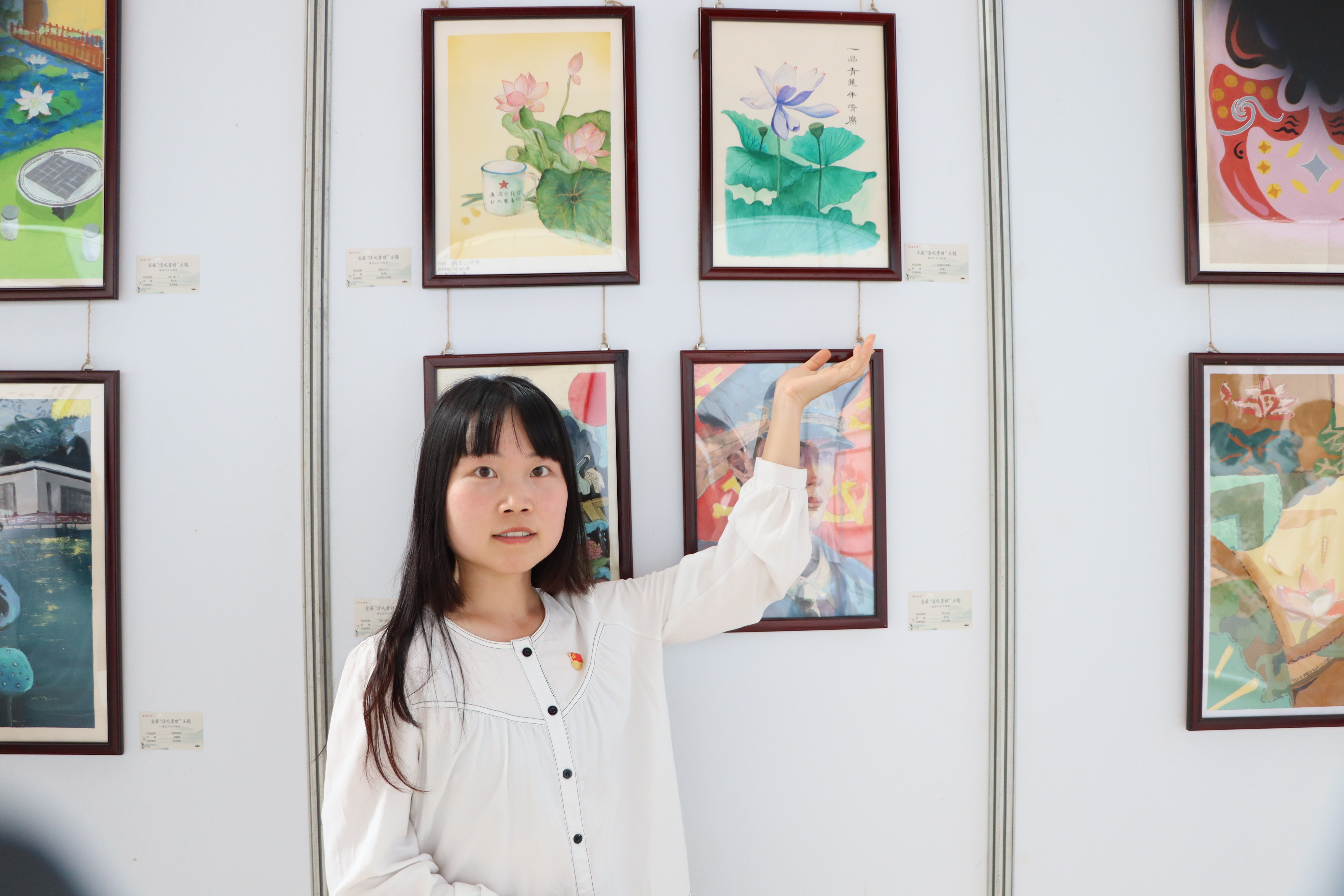 随后,全体党员同志分组参观了各类廉洁、廉政主题书法作品展、绘画作品展和漫画作品展。参观过程中,本科生第二党支部党员李娜同志向大家分享了个人获奖绘画作品“一品青莲伴清廉”创作的初衷和灵感。