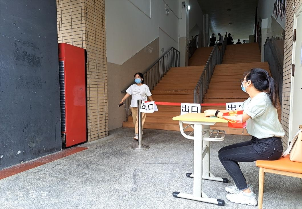 许琳老师在二食堂出口值守,提醒学生佩戴好口罩,并保持安全距离