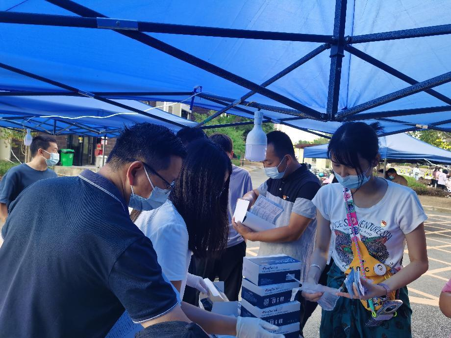 迅速反应,工作力量第一时间汇聚。“【紧急任务】根据全市统一安排,今天中午起将在公租房博士楼开展全员抗原检测,因人手不足,需紧急招募90名教职工作为志愿者,协助组织开展公租房博士楼检测。……”9月7日,党委组织部发出了一条志愿者服务招募公告。居住在学校花溪校区的教职工迅速响应,第一时间通过党组织报名180余人,防疫力量快速汇集,服务作用立即发挥。从招募、报名,到培训、上岗,只用了2个小时,就迅速形成作战力量。180余人分成13个志愿者小组,对博士楼、公租房等23栋建筑全覆盖开展抗原检测、核酸检测等服务。同时,在公租房物业中心成立临时指挥中心,组织人事部门靠前指挥,构建起上下联动、点面结合、高效有序的志愿服务体系。