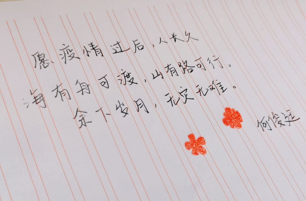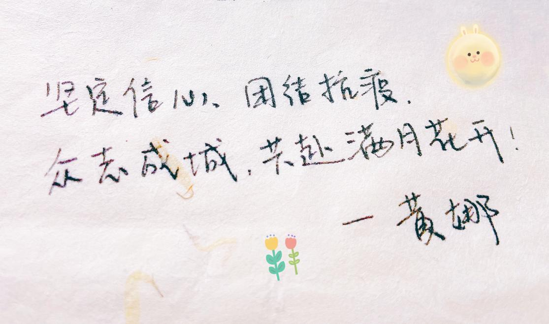 本科生第二党支部为致敬在抗疫一线辛苦付出的医护人员、公安民警、志愿者等“逆行者”,特开展了“手书祝福 ”主题党日活动,支部每名党员同志写下心愿和祝福,为抗疫必胜加油助力!