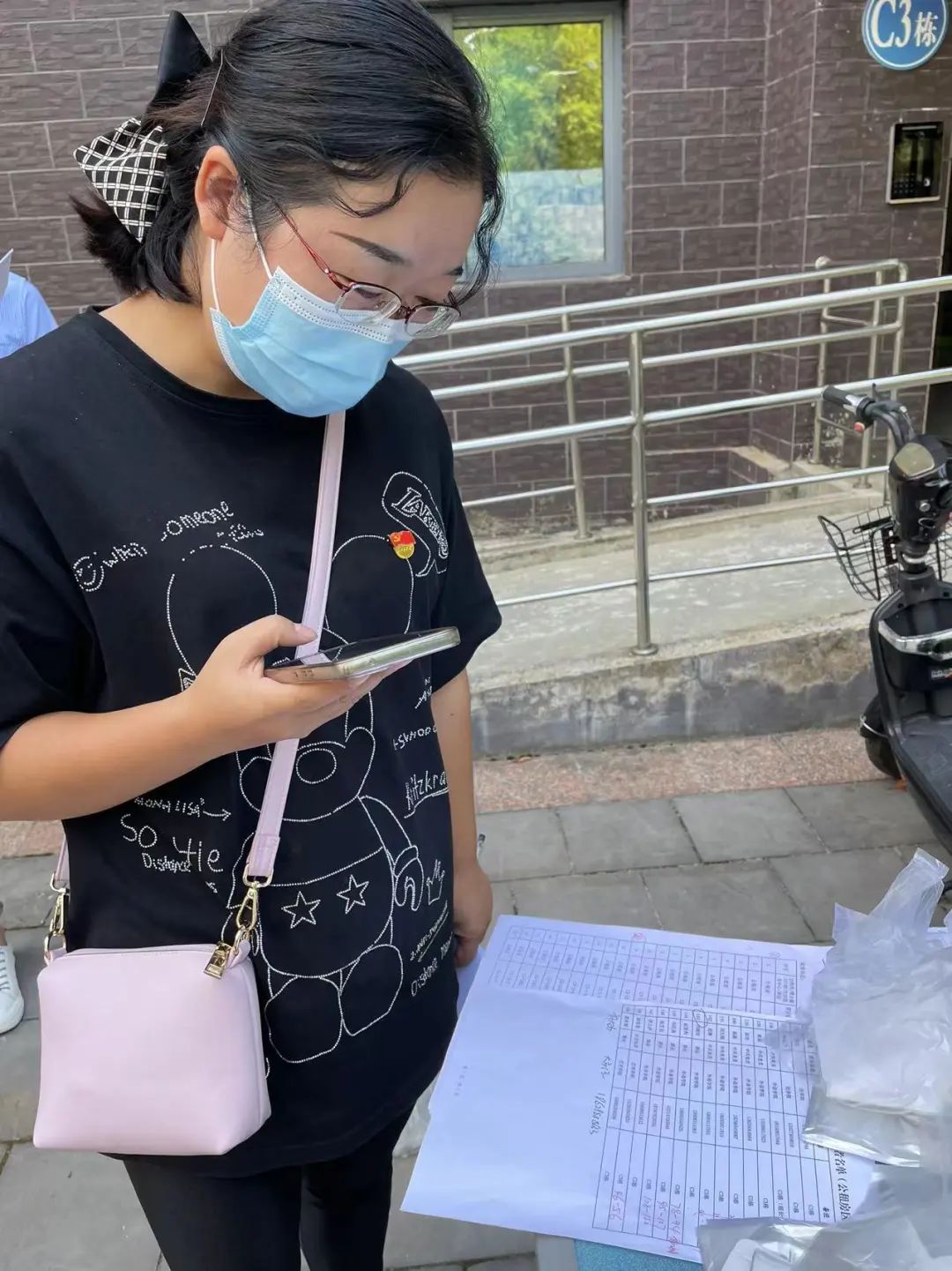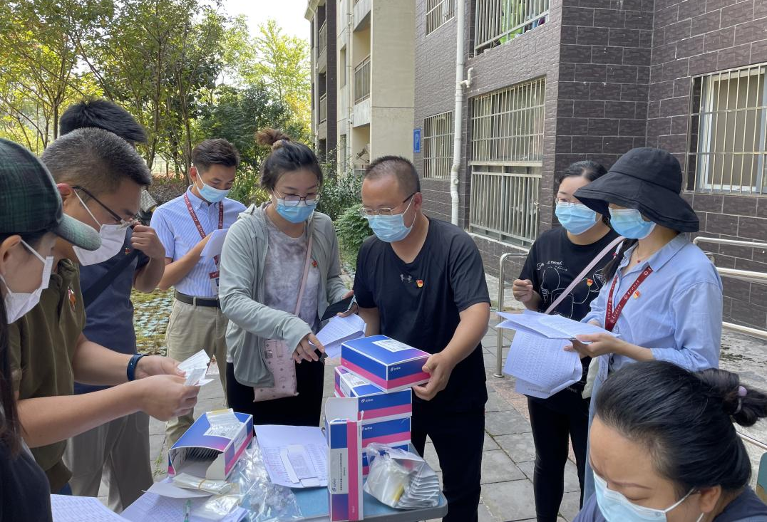 学院党委办公室黄娜同志为负责住户发放抗原检测物资