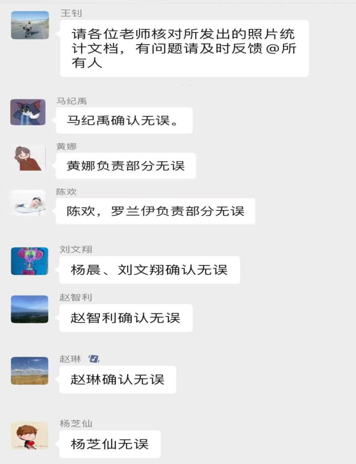 志愿者在工作群逐一回复个人负责工作情况