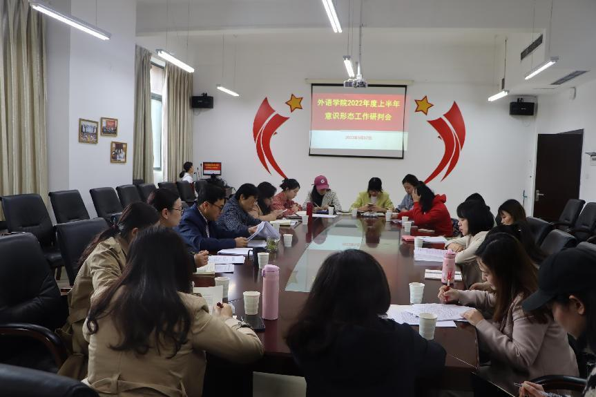 意识形态工作。二是抓住重点环节,力争取得实效。聚焦学院广大师生关心关注的热点难点问题,及时矛盾化解到位。三是强化措施,狠抓落实。全院教职工坚持立德树人,用习近平新时代中国特色社会主义思想铸魂育人,守牢意识形态工作底线,加强意识形态主战地建设,在确保学院意识形态领域安全的同时推动学院各项工作向前向上发展,为党的二十大胜利召开做好舆论支持、营造良好氛围。