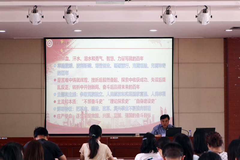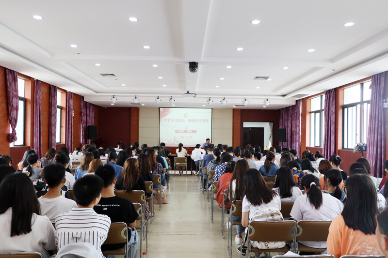 党委书记胡张林作主题宣讲。各基层党支部书记、党员代表,师生群众代表以及学院2021年春季入党积极分子培训班全体学员参加宣讲会。