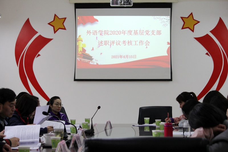 按照学校党委有关要求,学院党委对2020年度基层党支部书记抓党建述职评议考核工作进行了部署,并明确述职评议考核的主要内容和有关要求。述职评议考核工作会上,围绕加强党的政治建设、履行全面从严治党主体责任、强化党建引领、加强党的作风和纪律建设等内容,大学外语教学部教工第一党支部、大学外语教学部教工第二党支部、英语系教工党支部、联合教工党支部、学生党支部逐个依次进行现场述职。各基层党支部述职完毕后,全体参会人员结合述职情况和日常工作了解,对学院2020年度各基层党支部书记抓党建情况进行了测评。