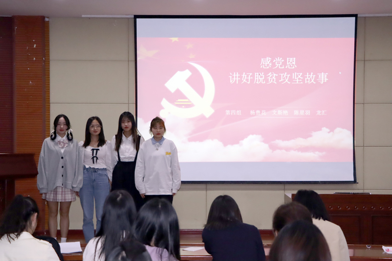 7个汇报小组分别以“忆峥嵘岁月,传红色精神”、“凝心聚力学党史,砥砺前行强党性”、“学四史,致敬革命先烈”、“参观红色基地,感念先辈英迹”、“感党恩,讲好脱贫攻坚故事”、“不忘初心、牢记使命,疫情中的党员事迹”、“党史经典诵读,在经典中汲取力量”为主题汇报了开展实践教育的情况。汇报结束后,班主任刘天琪总结;各实践小组以党史答题竞赛、参观红色教育基地、开展《榜样》学习、讲好贵州脱贫攻坚故事、诵读红色经典、唱红歌等形式开展了实践活动,主题生动、内容丰富、形式多样,实践教育成效很好,希望各位入党发展对象要进一步加强学习,严格要求自己,积极进步,争取早日成为一名优秀的共产党员。