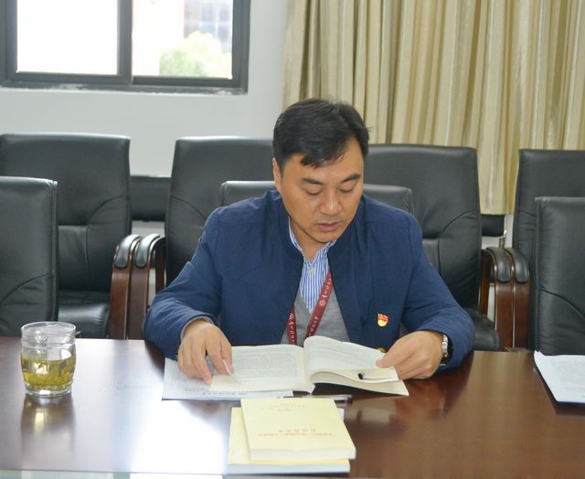 在励学楼301会议室召开党委理论学习中心组开展“不忘初心、牢记使命”主题教育第六次专题集体学习研讨会,学院领导、党支部书记,党员教师代表参加。学院党委书记胡张林主持。