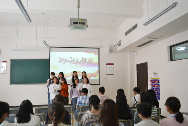随后,同学表演了配乐诗朗诵、小合唱、分享建国70周年阅兵仪式观后体会。