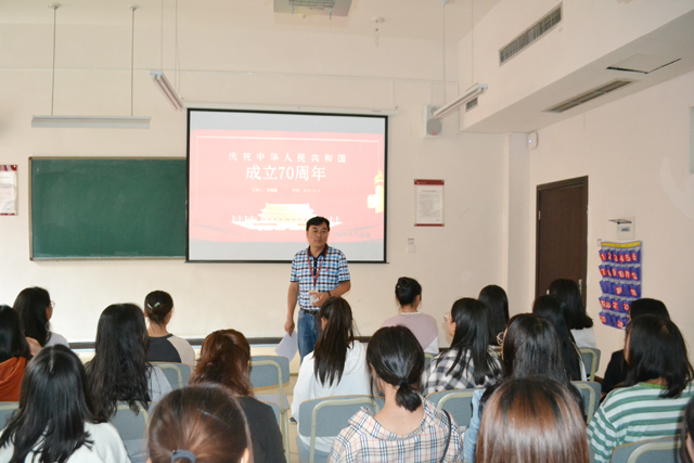 胡书记从中华人民共和国建国70周年光辉历程向同学们讲述了盛世中国梦,同时结合学校、学院发展,从河滨校区几十亩地到今天几千亩,从当初贵州财经学院、贵州省财政学校、贵州粮食学校三校交错办学,到今天大学城美丽的校园,2018年博士授权单位的取得,2019年博士研究生的招生等讲述了学校的发展。国家的强大、学校的发展是在中国共产党的正确领导下实现的,是一代又一代的共产党人为新中国带来光明与希望的道路上付出的不懈努力取得的。