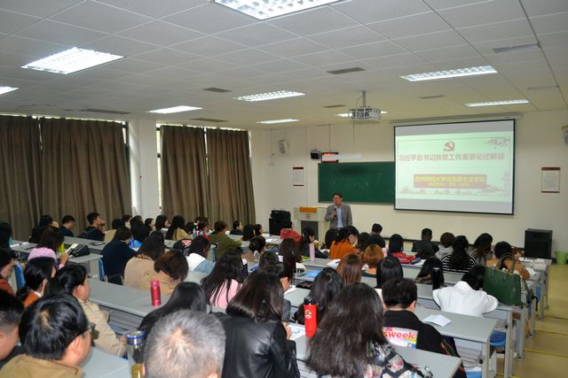 马克思主义学院副院长、教授蒙锡岗博士作主题为《习近平总书记扶贫工作重要论述解读》专题辅导,从三个方面进行讲解:一、充分认识脱贫攻坚的重大意义;二、坚持中国特色扶贫开发道路,扎实做好脱贫攻坚各项工作;三、携手消除贫困,共建人类命运共同体。他介绍习近平总书记关于脱贫攻坚工作的重要论述,指出,脱贫攻坚是全面建成小康社会最艰巨的任务,是社会主义的本质要求,是我们党的宗旨要求,是贫困地区发展的途径,全面实现小康一个民族都不能少,习近平总书记重要讲话精神,为我国扶贫攻坚全面建成小康社会能够取得成功奠定思想基础。要充分认识脱贫攻坚工作的重要意义,认真落实党中央、国务院和省市决策部署,进一步压实脱贫攻坚责任,着力解决“两不愁三保障”突出问题,深入推进专项巡视和成效考核发现问题整改,防止脱贫摘帽后松劲懈怠,夯实精准扶贫精准脱贫基础,加强扶贫领域作风和能力建设,高质量完成脱贫攻坚目标任务。