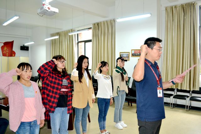 按照(中国共产主义青年团发展团员工作细则》,结合本学年度新团员发展计划,经学院团委考察审核、研究决定:批准彭明杰、吴发秀、谢田田、刘旭、陈蝶蝶五名青年学生加入中国共产主义青年团。并于2019年9月18日13:00在励学楼301举行新团员入团宣誓仪式。胡张林书记和康维老师出席此次仪式。