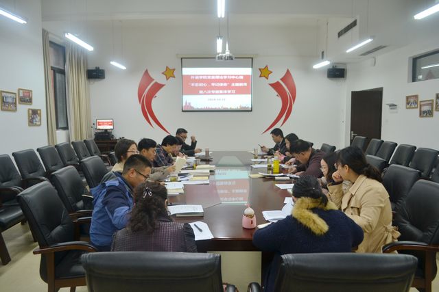 在励学楼301会议室召开党委理论学习中心组开展“不忘初心、牢记使命”主题教育第八次专题集体学习研讨会,学院领导、系部副主任、党支部书记,党员教师代表参加。学院党委书记胡张林主持。