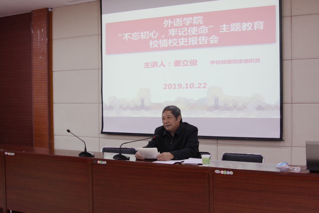 为使广大教职工进一步了解学校发展历史,培植爱校爱院氛围,10月22日,色色动漫 邀请学校特邀党建组织员秦立俊老师开展“不忘初心、牢记使命”主题教育校情校史专题讲座。