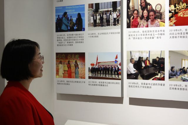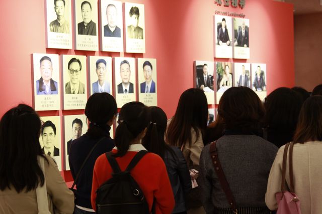 现场,大家认真参观,不时驻足,了解学校的发展历史。
