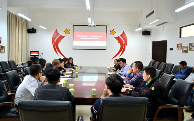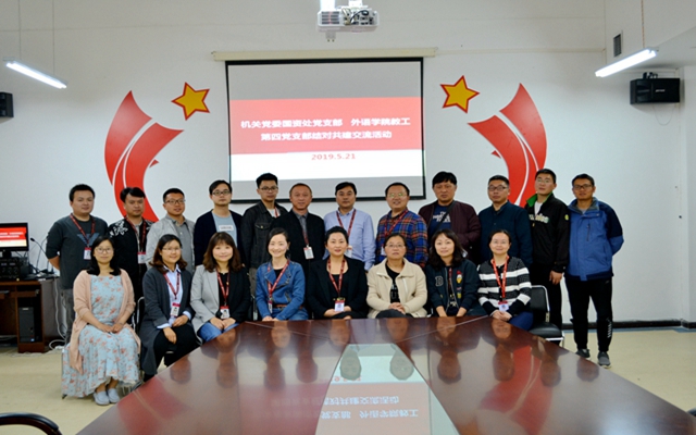 教工第四党支部在励学楼301会议室开展结对共建交流活动,双方党支部成员参加。国资处处长杨燚主持。