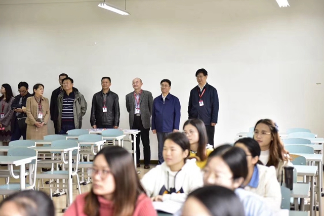 2015级商务英语班全体同学上“党的理论–辅导员这样说”。