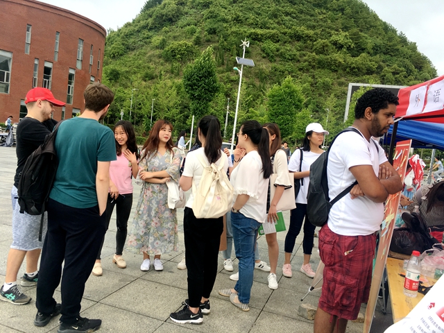 组织2018年春季入党发展对象实践教育小组二组在五四广场开展“学习十九大,发展对象在行动——外教和我们一起宣讲十九大”实践主题活动。