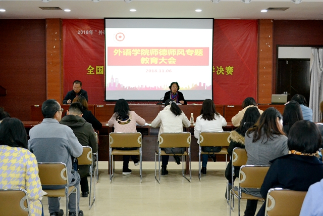 在励学楼401会议室召开师德师风专题教育大会,院长张虹主持。