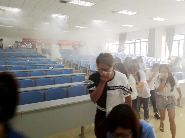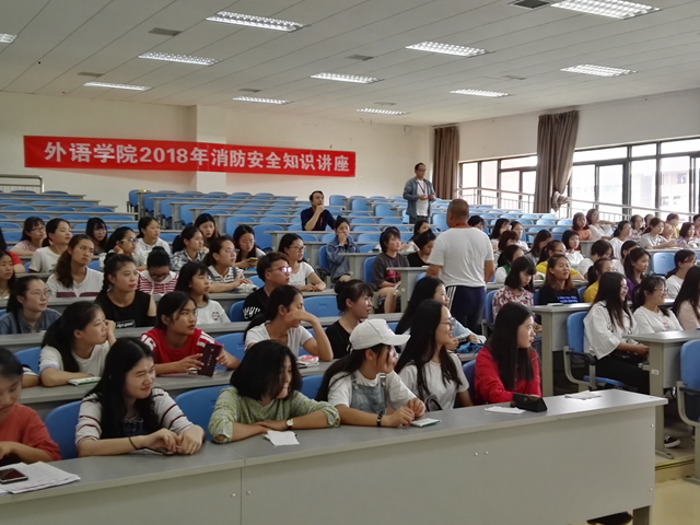 在乐学楼2-1开展消防知识讲座,并组织2017级学生进行逃生自救演练。
