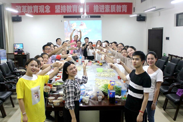 在两项议程结束后,大家一起准备食材,清洗餐具,自己动手包饺子,烹煮饺子,相互配合,其乐融融。
