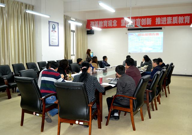 在励学楼301会议室召开2017年年度行政人员考核汇会,学院领导胡张林、王健芳、张忠民、雷晴岚、陆敏及学全体行政人员智参加。