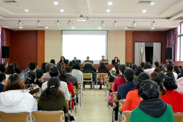 在励学楼401会议室召开2017-2018学年第二学期第一次教职工大会,学院领导胡张林、王健芳、张忠民、雷晴岚、陆敏及全体教职工参加。