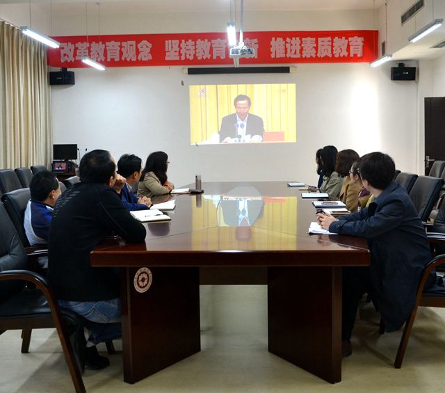 组织教职工在励学楼301会议室收看由贵州-2公共频道播出的现场直播。