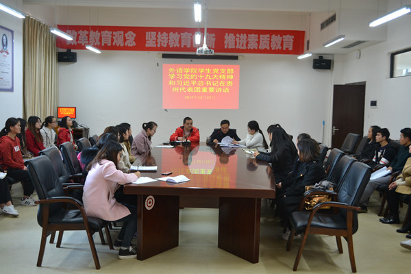 在励学楼301会议室组织学习了十九大精神和习近平总书记在贵州代表团重要讲话,学院党委书记胡张林、副书记张忠民、学生科科长李应智、色色动漫