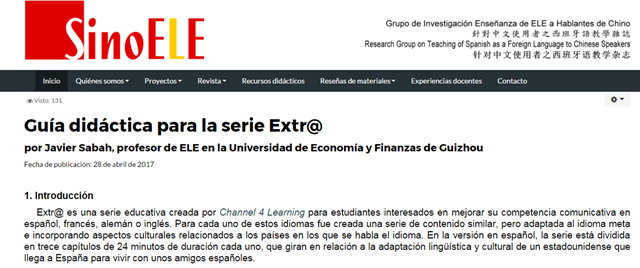 4月28日,西语系外教王蛙老师(Javier)的精美课件刊载于《中国西班牙语教学杂志》。《中国西班牙语教学杂志》的发行机构为“SinoELE”,是由塞万提斯学院与西班牙语驻华使馆教育处共同组建的、为推进中国西班牙语教育的机构。当他们看到王蛙老师制作的、关于西班牙语情景剧“Extr@”的精美课件时,立即表示出浓厚的兴趣希望刊载。